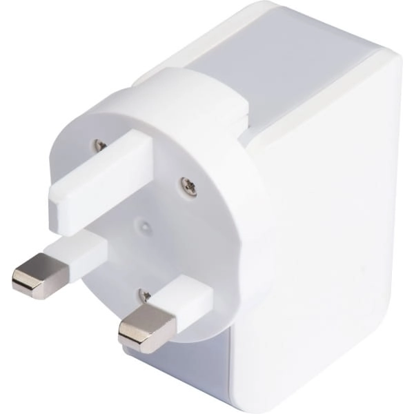 Adapter podróżny wykonany z plastiku w poręcznym etui. Adapter sprawdzi się w każdym kraju, który zechcesz odwiedzić, dodatkowo posiada 2 wejścia USB.