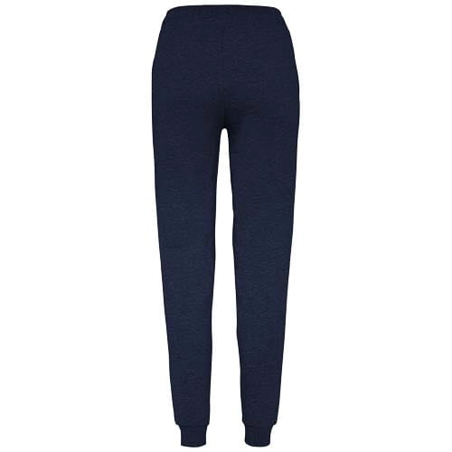 Sportowe spodnie z szerokim regulowanym pasem, sznurkiem do ściągania, dopasowanymi ściągaczami na nogawkach, wzmocnionymi szwami, prążkowanymi kieszeniami bocznymi i narożną tylną kieszenią z przeszyciem. Usuwalna etykieta.