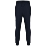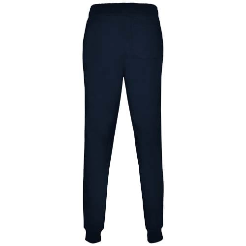 Sportowe spodnie z szerokim regulowanym pasem, sznurkiem do ściągania, dopasowanymi ściągaczami na nogawkach, wzmocnionymi szwami, prążkowanymi kieszeniami bocznymi i narożną tylną kieszenią z przeszyciem. Usuwalna etykieta.