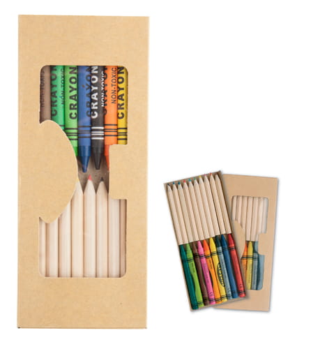 Zestaw kredek: ołówkowe oraz świecowe.