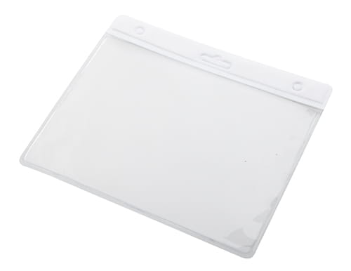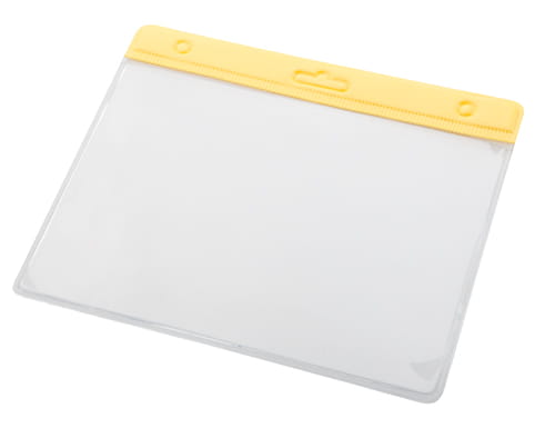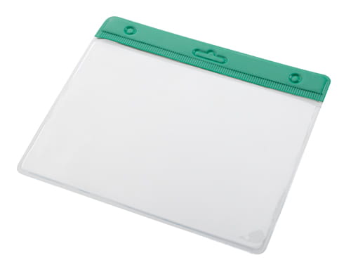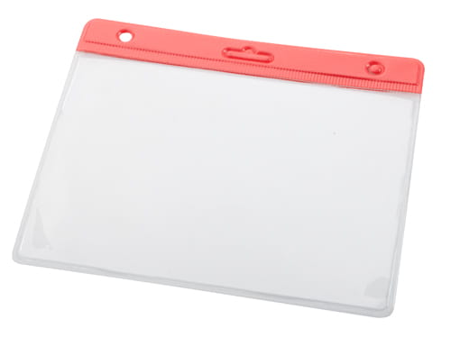 Transparentne etui na przepustki z PVC z kolorowym nagłówkiem.