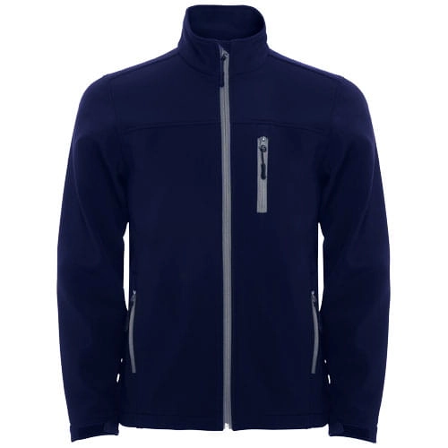 Wiatroszczelna i wodoodporna dwuwarstwowa kurtka typu softshell. Zamek błyskawiczny z przodu, zabezpieczenie suwaka z zapinaniem w kolorze kurtki. Trzy kieszenie zewnętrzne zapinane na suwak. Regulacja mankietów na rzepy. Dół ściągany gumką z regulatorami. Wodoodporność 1000 mm. Wiatroszczelna tkanina