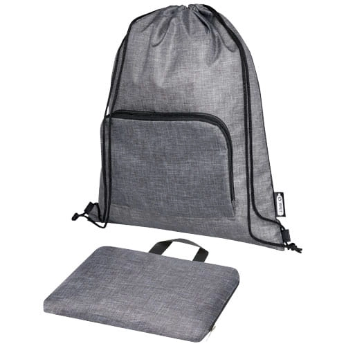 Składana, ściągana sznurkiem torba Ash z materiału z recyklingu z certyfikatem GRS ma główną przegrodę z zapięciem na sznurek i przednią kieszeń zapinaną na zamek błyskawiczny, dzięki czemu torbę tę można łatwo złożyć, aby ułatwić transport i przechowywanie.
