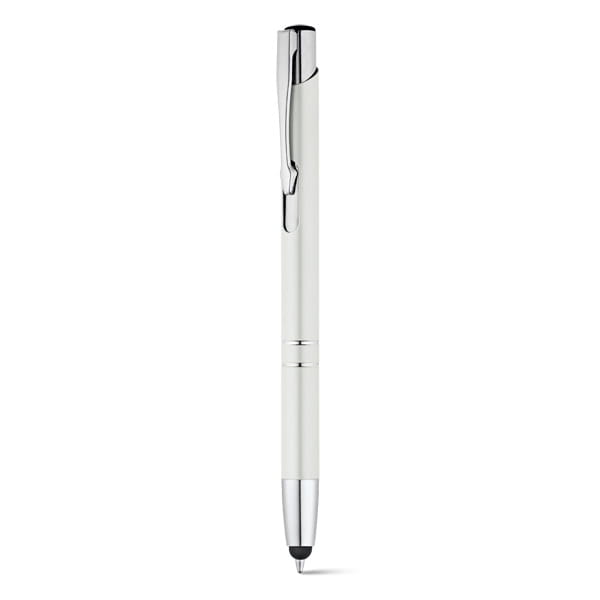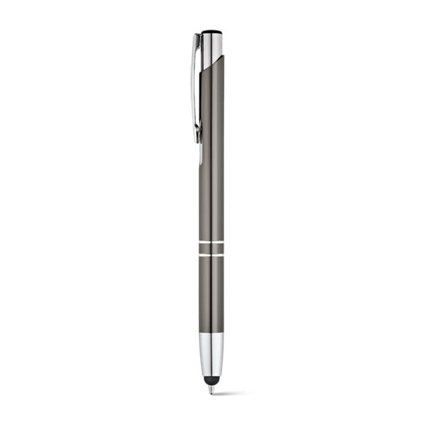 Długopis. Aluminium. Zawiera dotykową końcówkę. Mateliczne wykończnie.