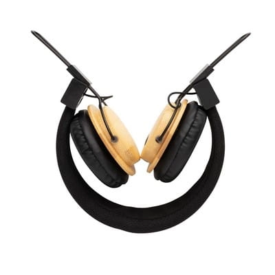 Ekologiczne, bambusowe słuchawki bezprzewodowe BT 5.0, nauszne, składane, funkcja odbierania połączeń, wbudowany mikrofon, nauszniki słuchawek wykonane z bambusa, opaska na głowę wykonana z rPET, w pełni naładowany akumulator o pojemności 200 mAh umożliwia odtwarzanie muzyki do 4 godzin, ponowne naładowanie w 2 godziny, zasięg do 10 m