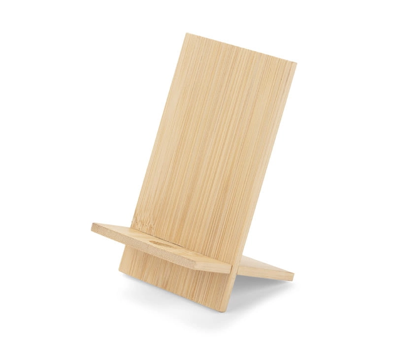 RAGA to praktyczny stojak do telefonu wykonany w całości z ekologicznego surowca - bambusa. Zapewnia stabilną podstawę dla telefonów i innych urządzeń mobilnych. Otwór na kabel pozwoli bez problemu naładować urządzenie w czasie korzystania ze stojaka. Produkt do samodzielnego złożenia poprzez połączenie dwóch bambusowych płytek. Stojak zapakowany jest w papierową brązową kopertę z infografiką - instrukcją montażu.