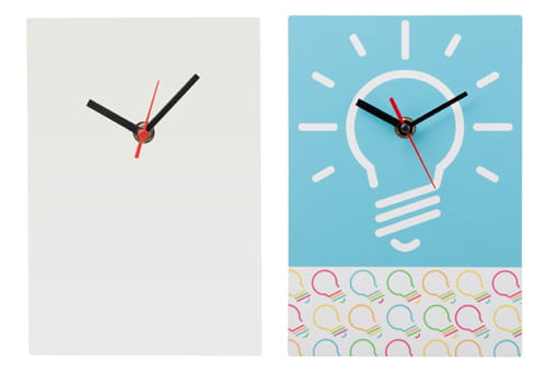 Personalizowany, wykonany z drewnianej płyty HDF, prostokątny zegar ścienny z grafiką. Produkt działa na 1 baterie AA, dostarczany bez baterii. Min. zam.: 50 szt.