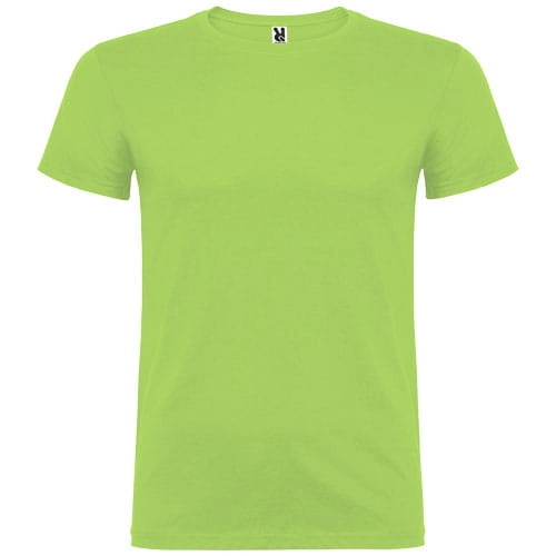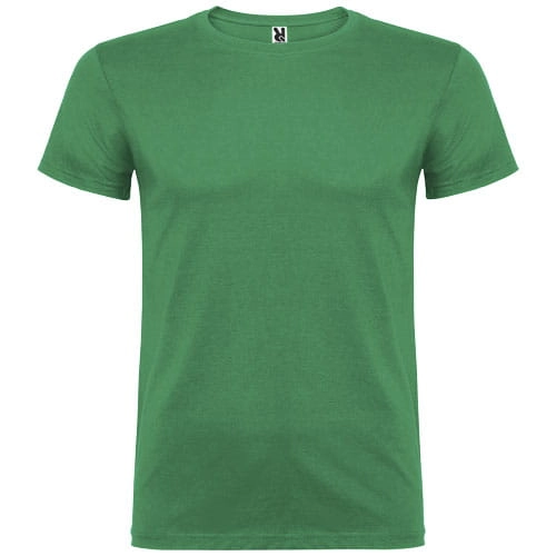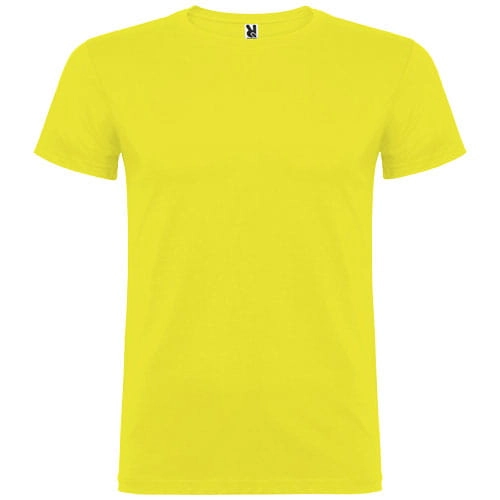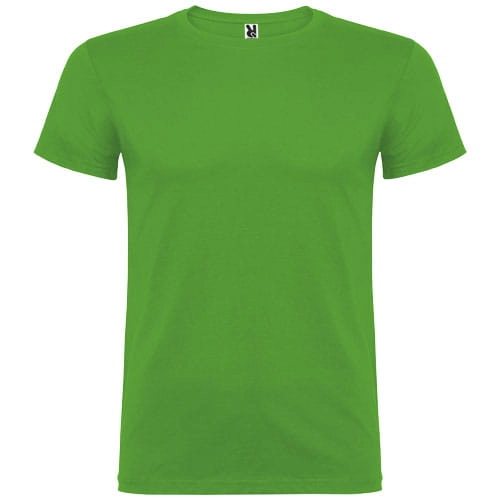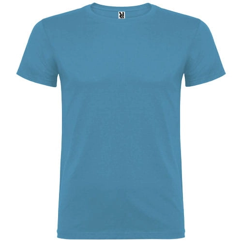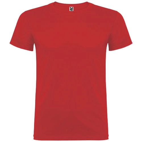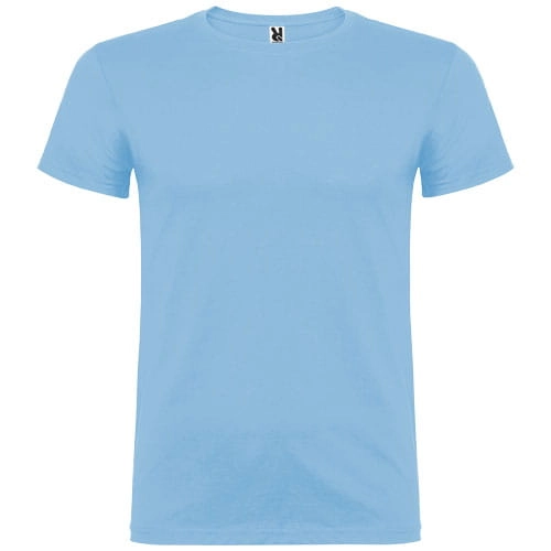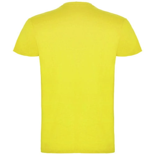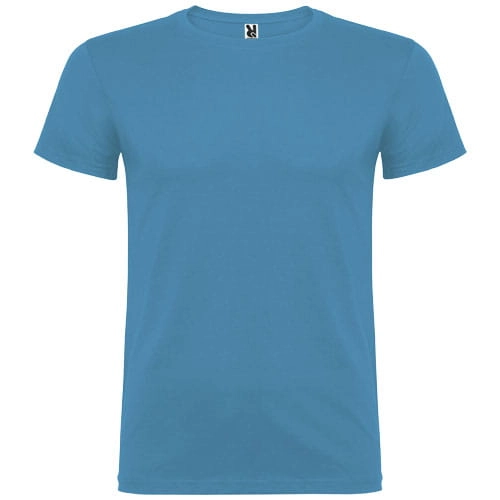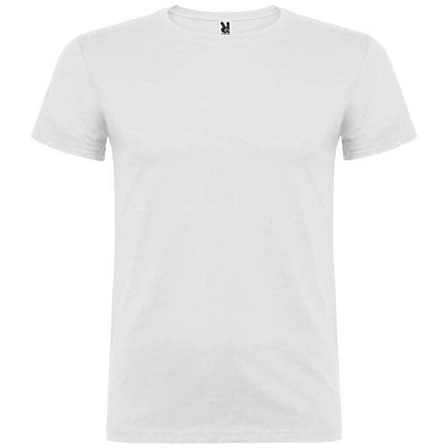 T-shirt z krótkim rękawem. Podwójna tkanina z dodatkiem elastanu przy kołnierzu. Wzmocnione, kryte szwy na karczku. Brak szwów bocznych w wersji dla dorosłych. Usuwalna metka.