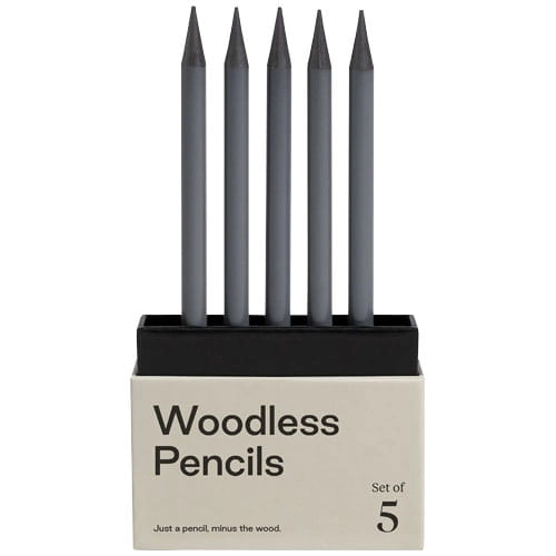 Zestaw 5 ołówków grafitowych, które zawierają 5 razy więcej grafitu. Bezdrzewny korpus można naostrzyć, aby uzyskać wyraźne linie lub stępić, aby uzyskać ekspresyjne pociągnięcia lub subtelne cieniowanie. Bezdrzewna konstrukcja pozwala na wszechstronność przy jednoczesnym oszczędzeniu bałaganu związanego z tradycyjnymi wiórami drzewnymi. Solidna waga tych ołówków sprawia, że doskonale leżą w dłoni, niezależnie od tego, czy piszesz, bazgrzesz, szkicujesz czy rysujesz.
