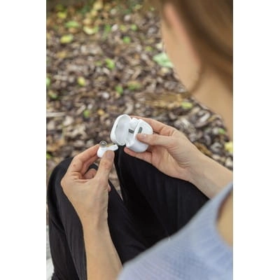 Bezprzewodowe słuchawki douszne w etui sterylizującym UV-C