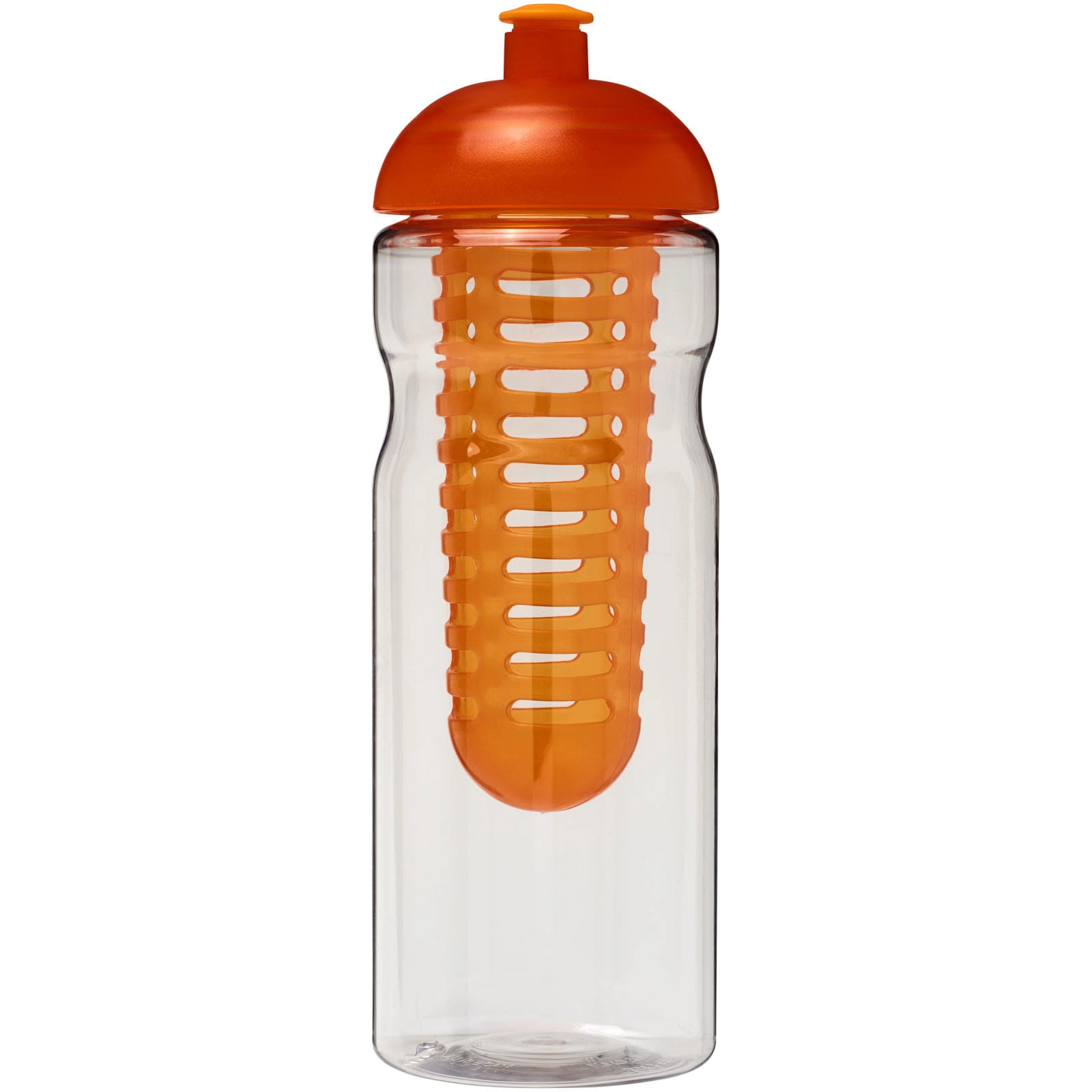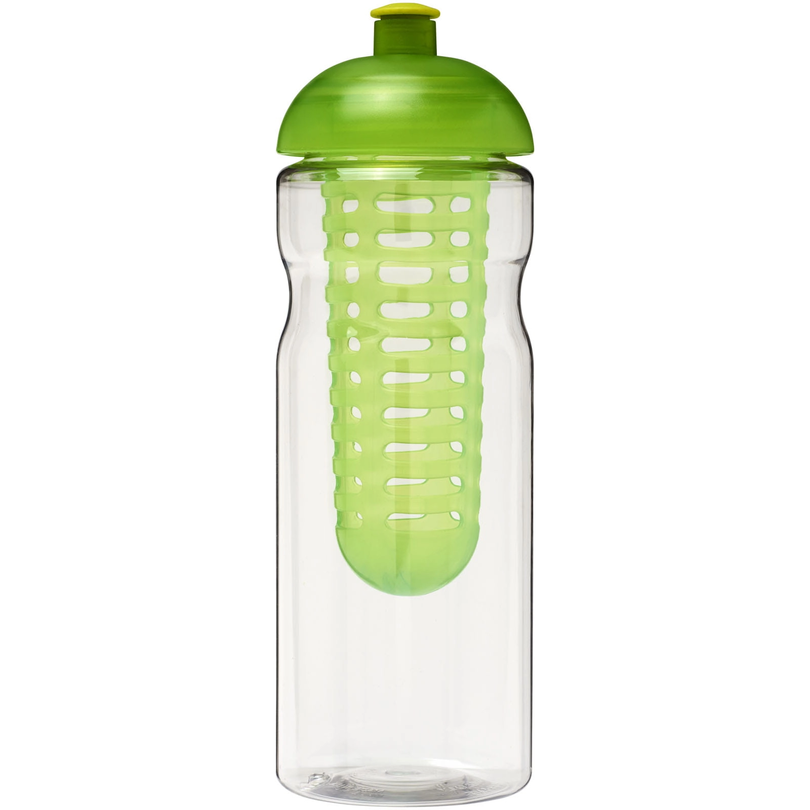 Bidon H2O Base® z wypukłym wieczkiem o pojemności 650 ml z możliwością przyrządzania wody smakowej. Jednowarstwowa sportowa butelka o ergonomicznym kształcie. Bidon wykonano z tworzywa PET nadającego się do recyklingu. Wyposażony jest w odporną na zalanie pokrywę z dzióbkiem typu push-pull i wyjmowanym zaparzaczem, który pozwala dodać ulubiony smak owocowy do napoju. Pojemność wynosi 650 ml. Mieszaj i łącz kolory, aby stworzyć idealną butelkę. Skontaktuj się z działem obsługi klienta, aby uzyskać informacje o dodatkowych opcjach kolorystycznych. Wykonano w Wielkiej Brytanii. Tworzywo PET, PP.