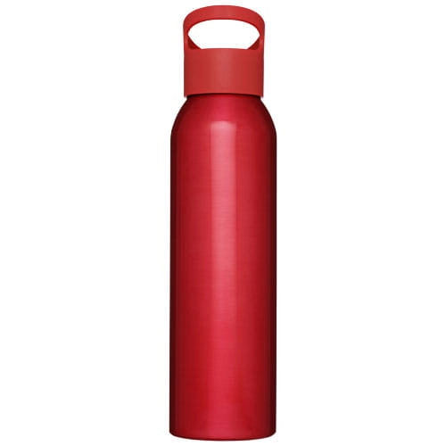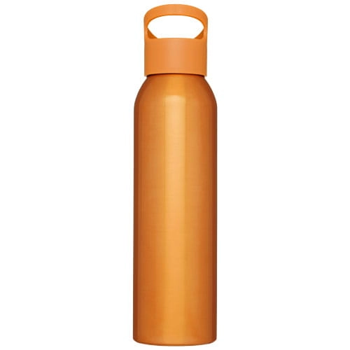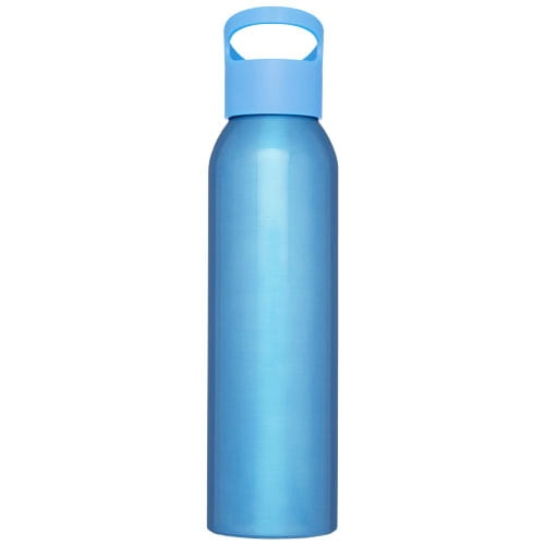 Butelka aluminiowa z jednowarstwową ścianką i zakrętką. Zakrętka posiada uchwyt ułatwiający przenoszenie. Nie zawiera BPA. Pojemność 650 ml.