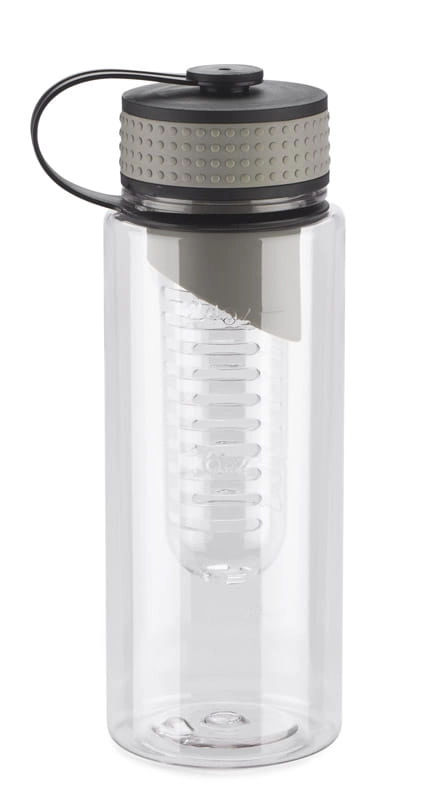 Bidon posiadający wkład na owoce. Pojemność 800 ml. Wykonany z trytanu. Zapakowany w woreczek biodegradowalny.