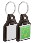 Kwadratowy brelok ze skóry PU z metalowym elementem pokrytym epoxy domingiem. Cena zawiera znakowanie metodą epoxy doming. Min. zam.: 100 sztuk.