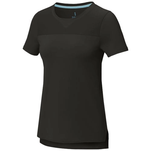 Damska koszulka z krótkim rękawem Borax cool fit to idealne połączenie stylu, zrównoważonego rozwoju i sportowej wydajności. Wykonana w 90% z materiałów pochodzących z recyklingu, posiadających certyfikat GRS, z domieszką elastanu, który zapewnia rozciągliwość i wygodę, o gramaturze 160 g/m2. Wykończenie cool-fit pomaga zachować chłód i suchość. Certyfikat GRS zapewnia w 100% certyfikowany łańcuch dostaw, od surowców po nasze techniki druku, dzięki czemu ta odzież jest ekologiczna.