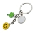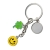 Metalowy modny brelok z zawieszkami - symbolami szczęścia: czterolistna koniczynka, buźka Happy. Pakowany w czarne opakowanie upominkowe.