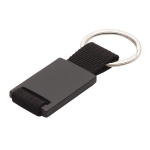 Elegancki brelok o czarnej matowej powierzchni. Wykonany z metalu i poliestru.
