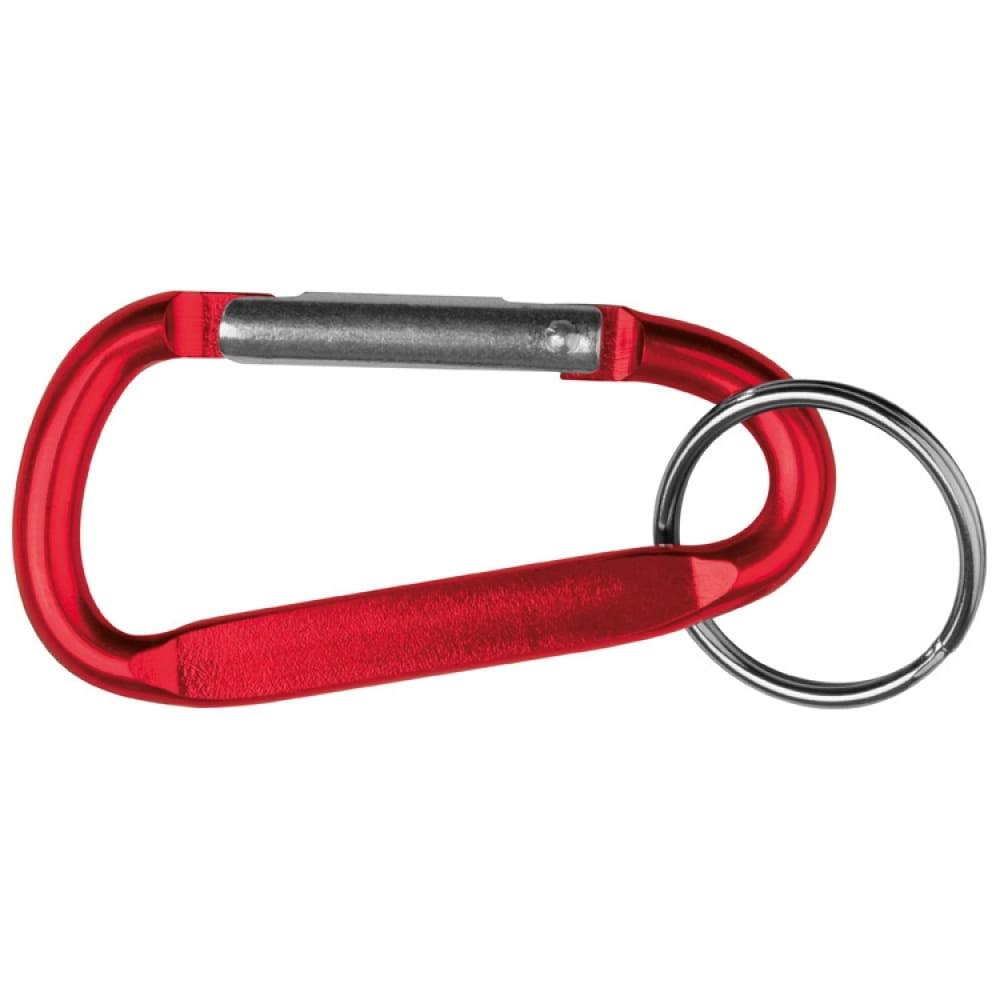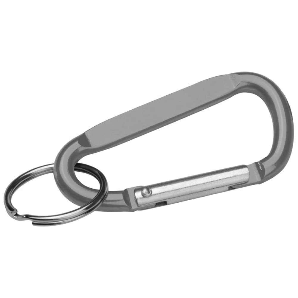 Metalowy brelok z karabińczykiem posiadający specjalnie spłaszczony element, na którym można wykonać grawerunek.