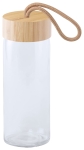 Szklana butelka sportowa z bambusową zakrywką. 420ml. W kartoniku.