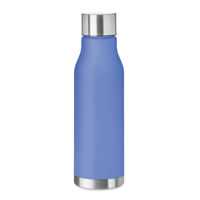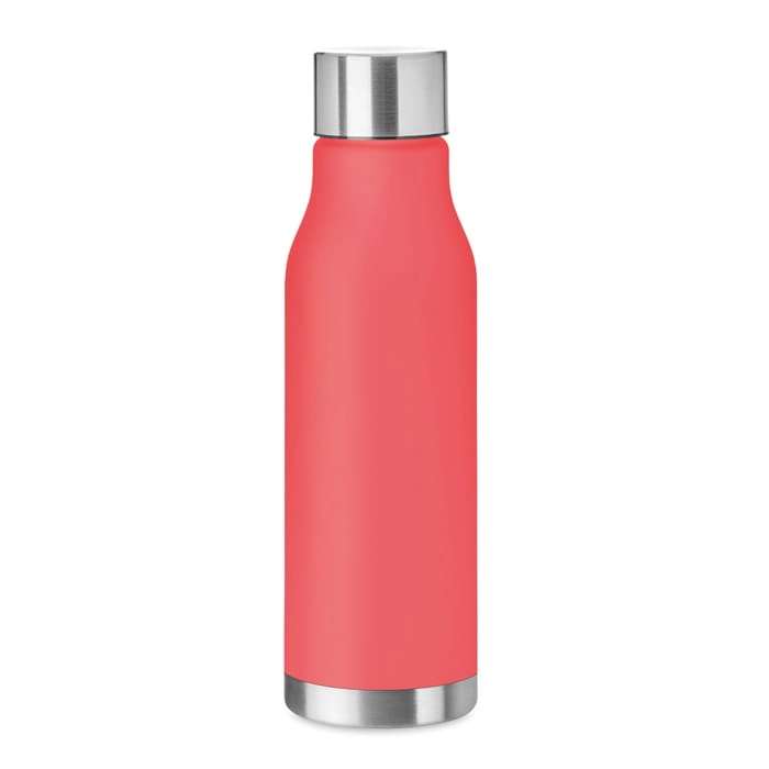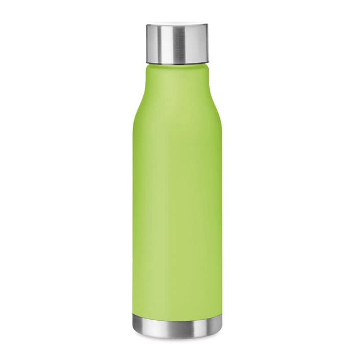 Butelka z RPET z gumowanym wykończeniem, zakrętka ze stali nierdzewnej z silikonowym pierścieniem. Bez BPA. Szczelna. Pojemność: 600 ml. Nie nadaje się do napojów gazowanych.