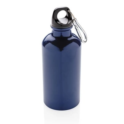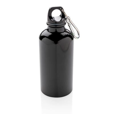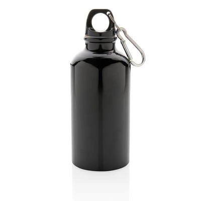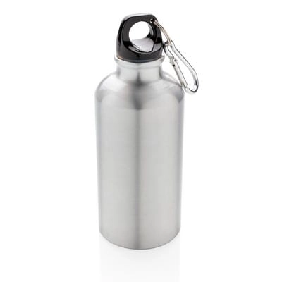 Butelka sportowa 400 ml z karabińczykiem (tylko do użytku promocyjnego), wykonana z aluminium, zalecana wyłącznie do zimnej wody, nie zawiera BPA