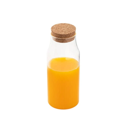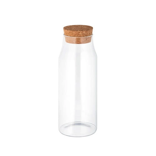 Butelka z borokrzemianowego szkła z korkową pokrywką. Pojemność do 1 l. Dostarczana w pudełku