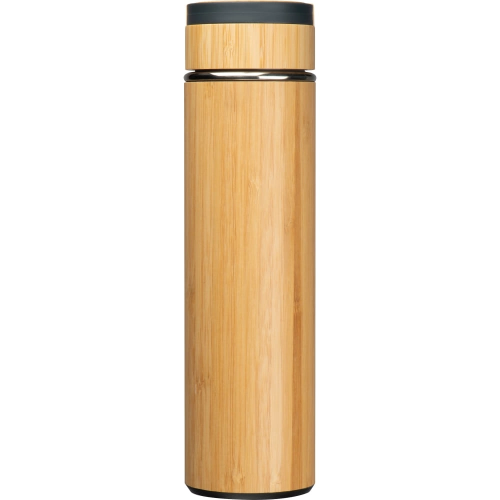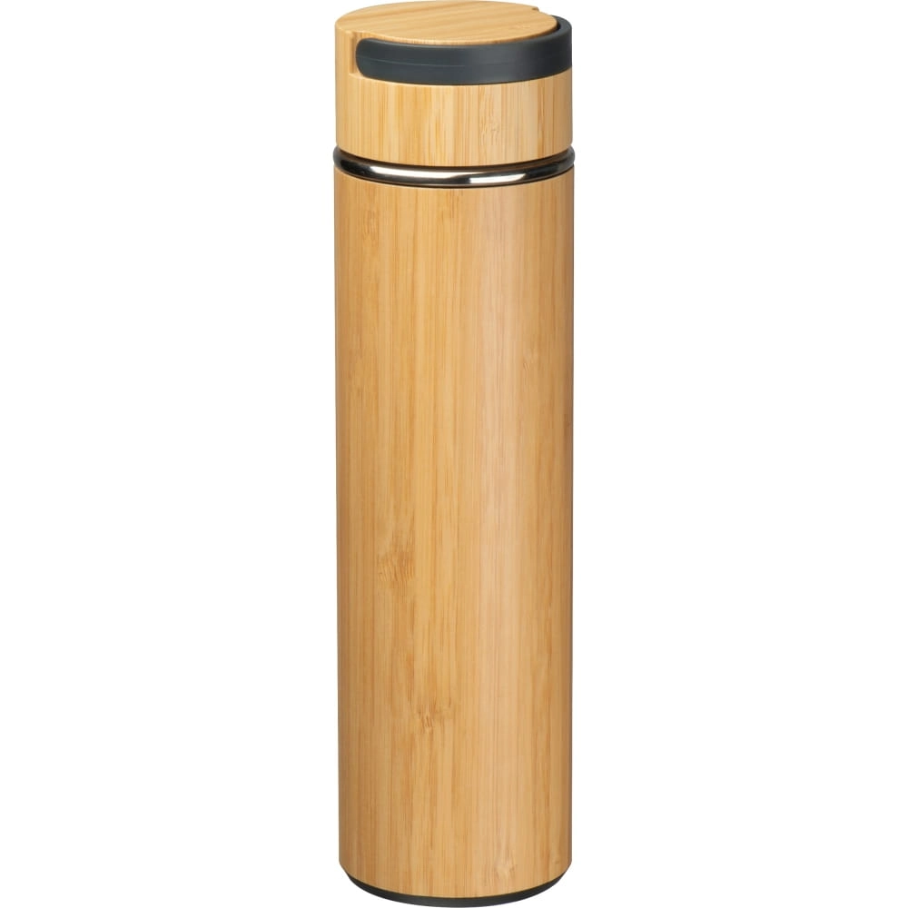 Butelka termiczna z podwójnymi ściankami, wykonana ze stali nierdzewnej, wyposażona w sitko do parzenia herbaty. Pojemność 500 ml.