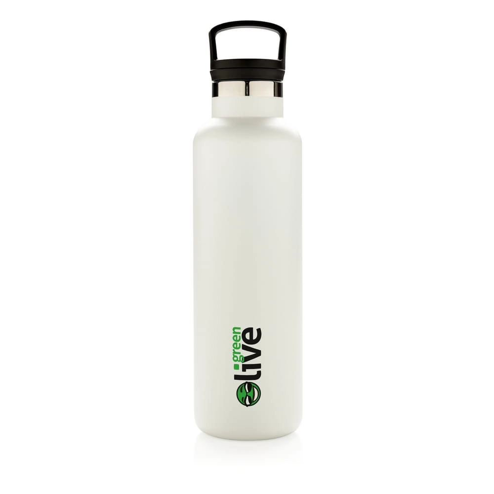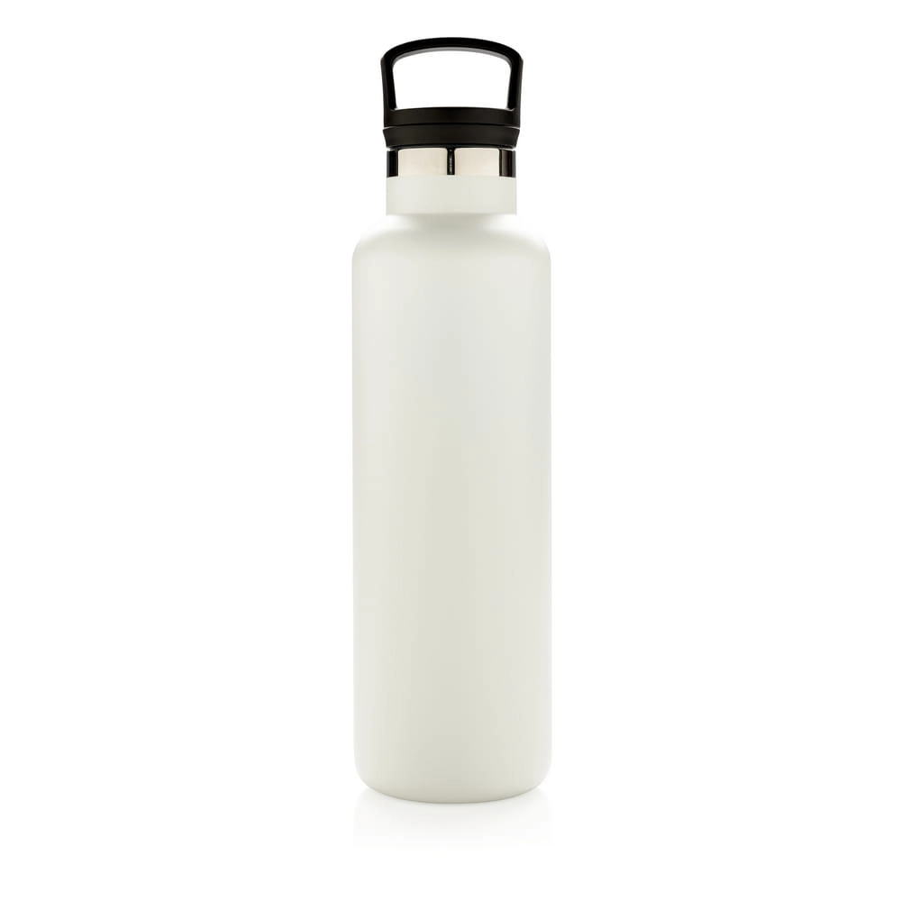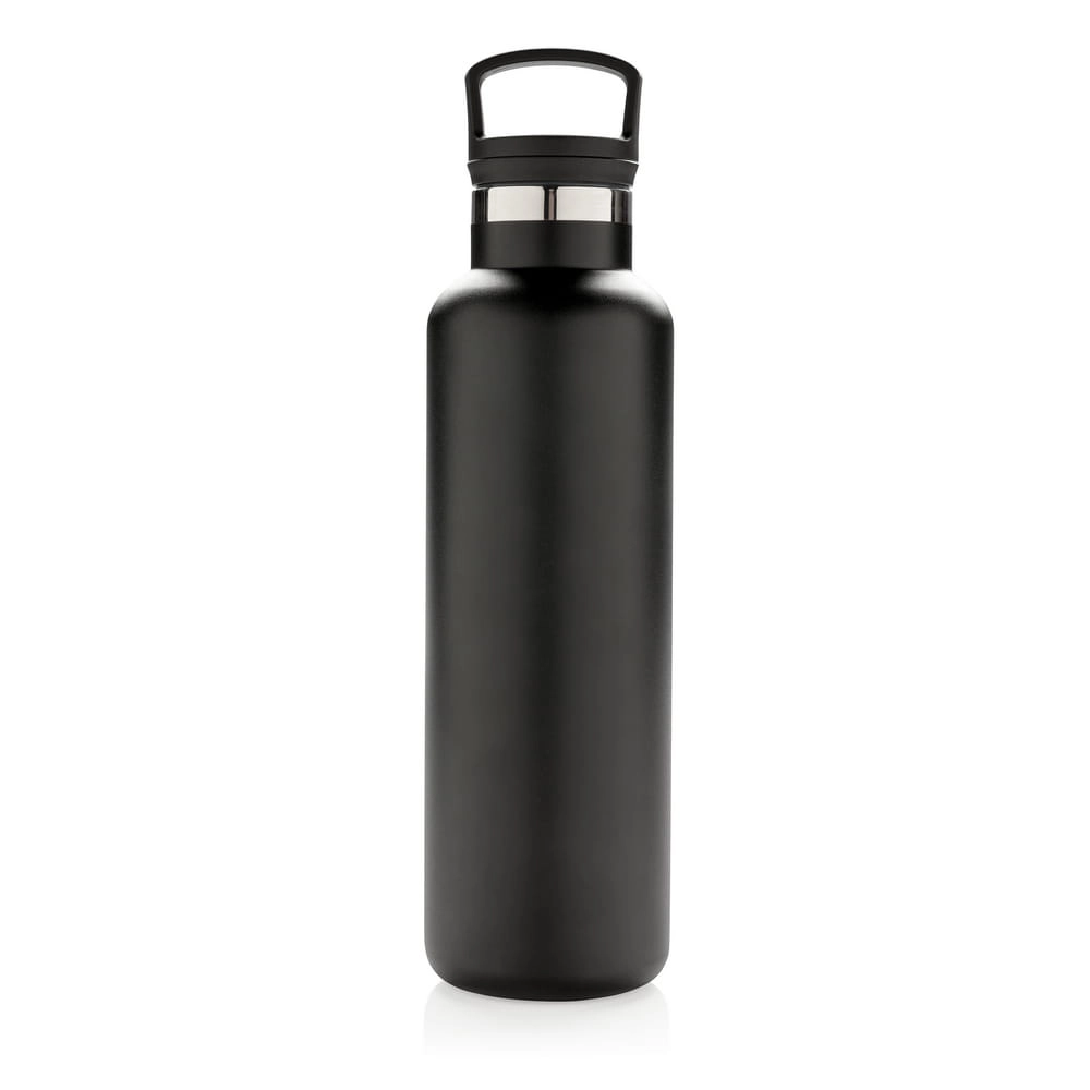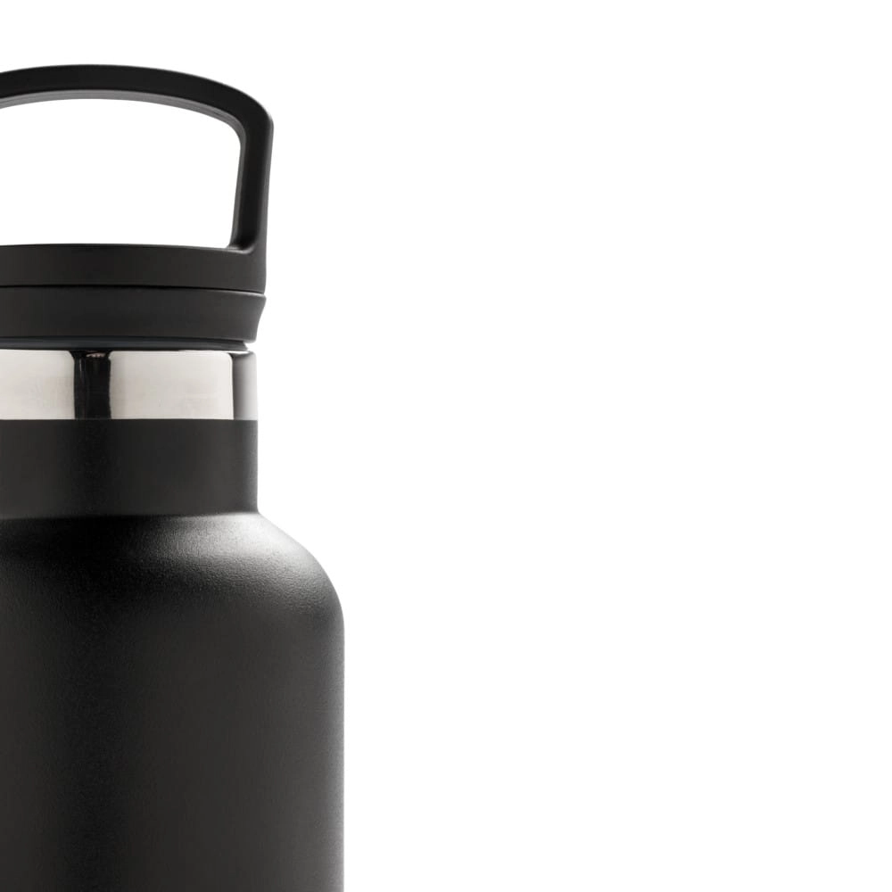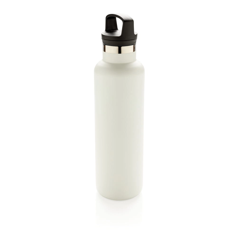 Butelka termiczna 600 ml, proszkowa powłoka, podwójne ścianki, zakrętka 2 w 1 z wyjmowanym sitkiem do zaparzania herbaty lub dodawania do wody owoców i ziół, ustnik do sączenia napojów i dodawania kostek lodu, wewnątrz stal nierdzewna 304, stal nierdzewna 201 na zewnątrz, utrzymuje temperaturę ciepłych napojów do 5 godzin oraz zimnych do 15 godzin