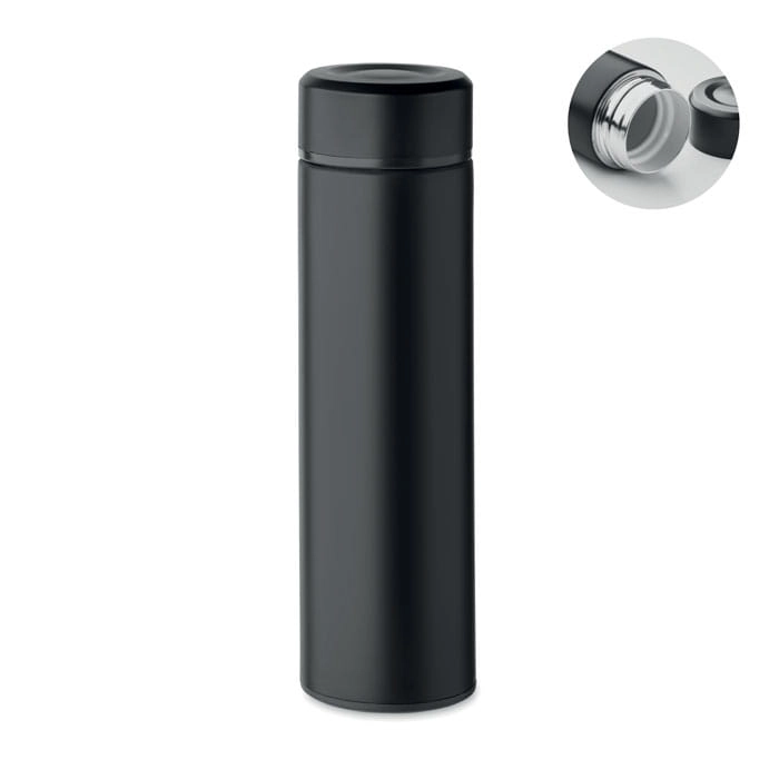 Dwuścienna butelka z izolacją próżniową z recyklingowanej stali nierdzewnej (90% z recyklingowanej stali nierdzewnej i 10% ze stali nierdzewnej) z ceramiczną warstwą wewnętrzną. Pojemność: 420 ml.