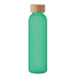 Szklana butelka z matowym wykończeniem i bambusową zakrętką. Szczelna. Pojemność: 500 ml. Bambus jest produktem naturalnym, dlatego mogą wystąpić nieznaczne różnice w kolorze, wzorze i rozmiarze.