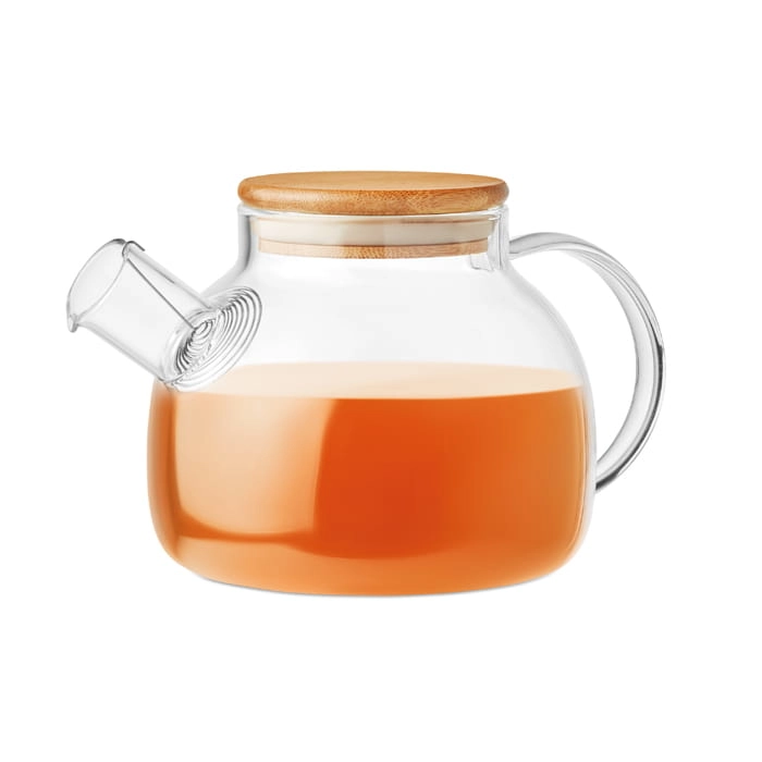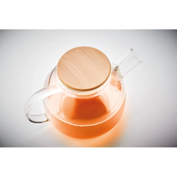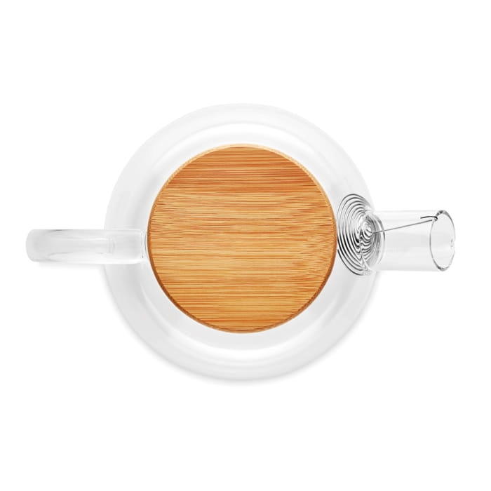 Czajnik ze szkła borokrzemowego z zaparzaczem ze stali nierdzewnej i bambusową pokrywką. Pojemność 850 ml. Bambus jest produktem naturalnym, mogą występować niewielkie różnice w kolorze i rozmiarze.