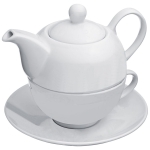 Elegancki zestaw do herbaty składający się z czajnika o poj. 400 ml oraz filiżanki z podstawką o poj. 200 ml. Całość wykonana z wysokiej jakości porcelany.