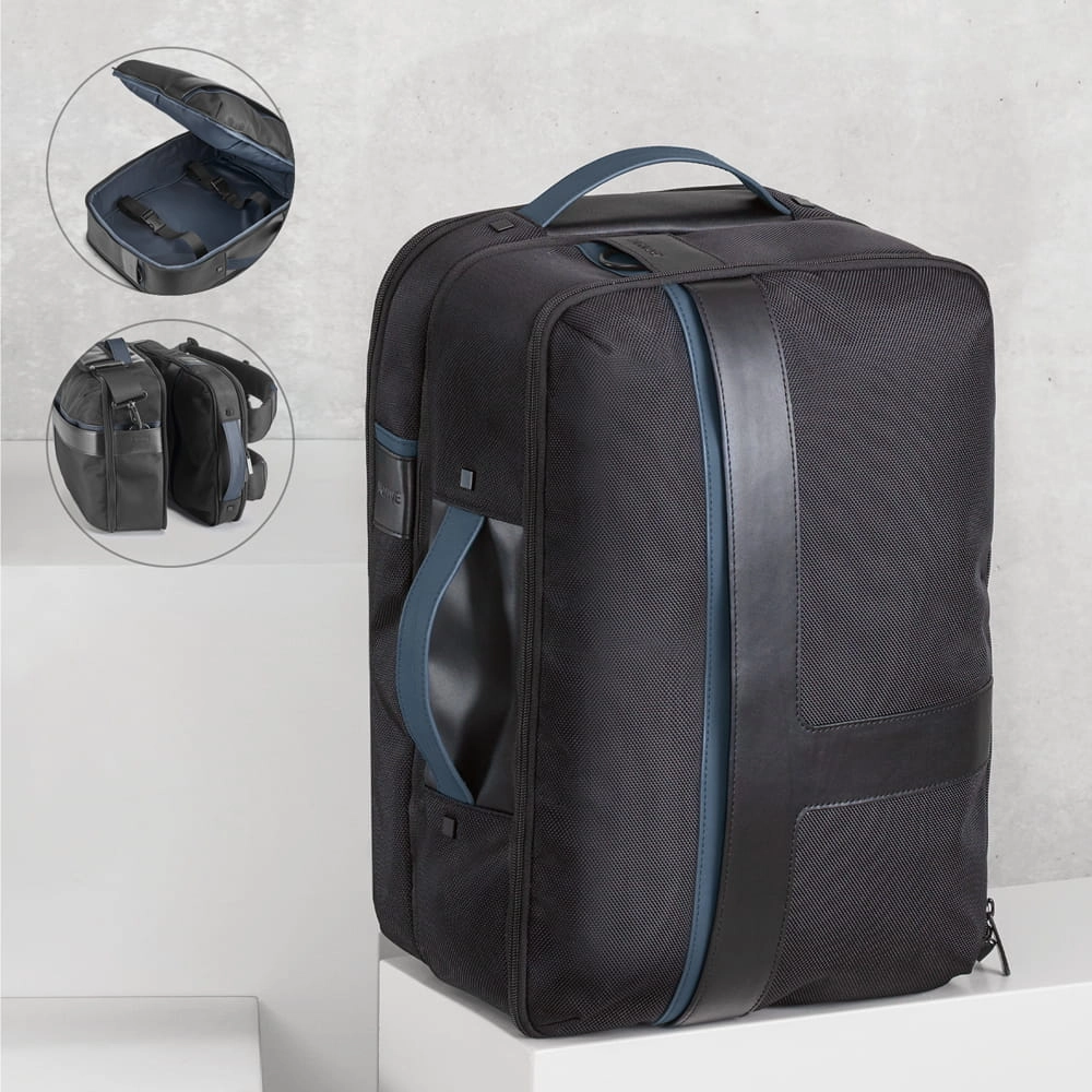 DYNAMIC 2 in 1 to miejski plecak, który wyróżnia się uniwersalnością i podwójnych zastosowaniem. Jego konstrukcja pozwala mu być unikalnym przedmiotem, który dyskretnie można przemienić w plecak i torbę podróżną. Plecak posiada dwie kieszenie wewnątrzne, które pozwalają przechować laptopa do 15'6'' i tablet do 10'5''. Przestronna torba podróżna mieści w sobie ubrania na wycieczkę 2-3 dniową. Posiada tylną kieszeń na plecach wyposażoną w system antykradzieżowy. Materiał imitacja skóry 1680D, zamki z elastyczną opaską z płytką z PU. DYNAMIC 2 in 1 ma również pasek pozwalający na transport na uchwycie walizki, co podkreśla jego praktyczną stronę. Dwie części tego plecaka mogą być używane osobno lub jako całość. Dostarczany w torbie z materiału non-woven.