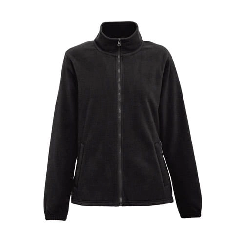Dopasowana damska kurtka polarowa typu fleece o wysokiej gęstości, 100% poliester (300 g/m?), zapobiegająca mechaceniu się. Kolorowy zamek błyskawiczny i wewnętrzna podszewka dla większego komfortu. Zawiera zapinane na zamek kieszenie boczne i klapę, gumkę na rękawach, elastyczny ściągacz u dołu i taśmę wzmacniającą po wewnętrznej stronie kołnierza