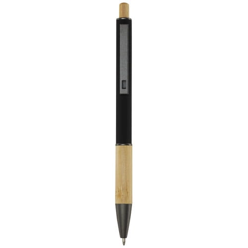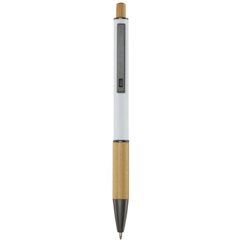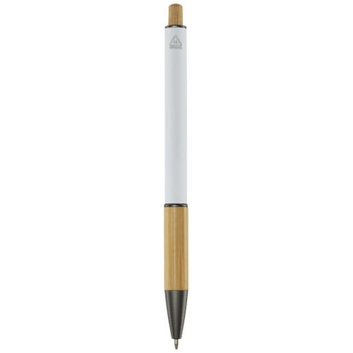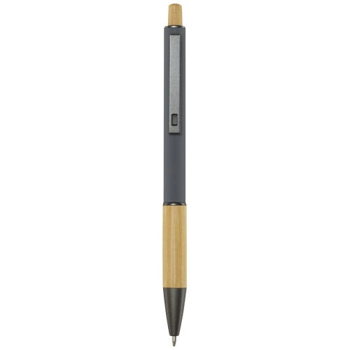 Darius długopis wykonany z aluminium pochodzącego z recyklingu, którego produkcja wymaga mniej energii niż w przypadku aluminium wyprodukowanego z surowców. Ogranicza również ilość odpadów na wysypiskach śmieci i pomaga chronić zasoby naturalne w celu zmniejszenia emisji gazów cieplarnianych. Przycisk i dolna część korpusu wykonane są z bambusa. Kolor tuszu: Niebieski. Żywotność: 800 metrów. Rozmiar stalówki: 1,00 mm.