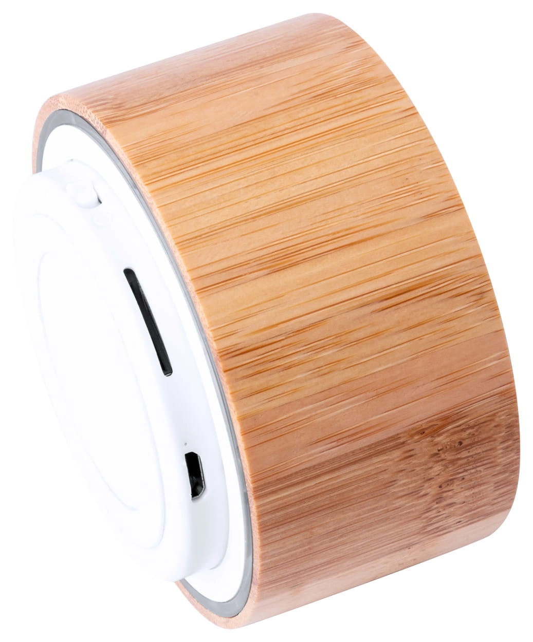 Głośnik Bluetooth w bambusowej obudowie z funkcją rozmów głośnomówiących, radiem FM i wbudowanym akumulatorem. W zestawie kabel USB do ładowania.