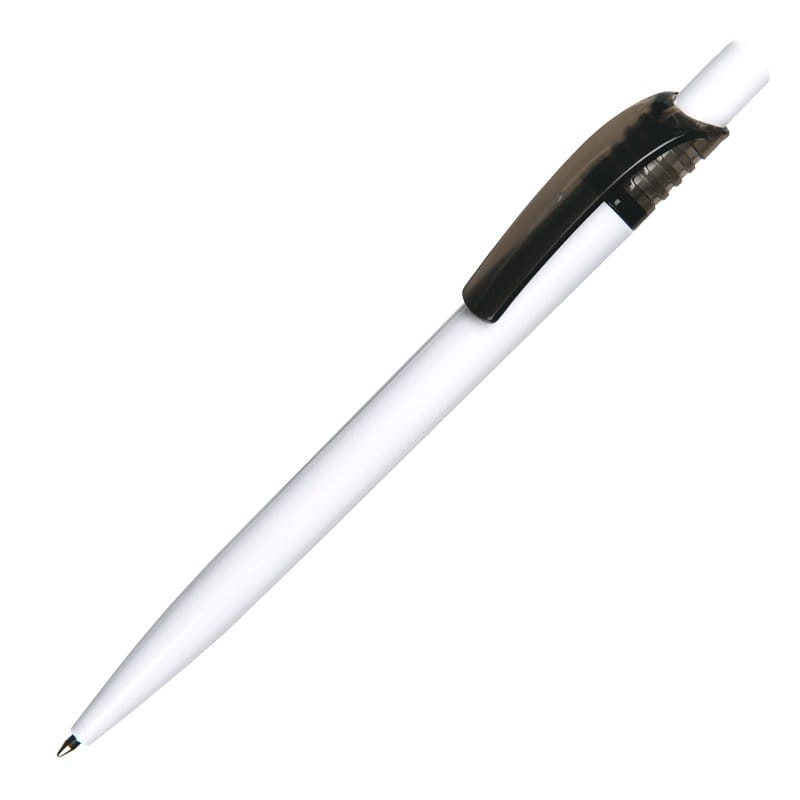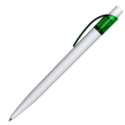 Plastikowy długopis promocyjny. Wyposażony w niebieski wkład.