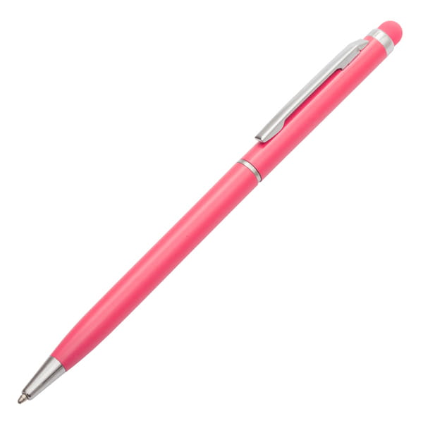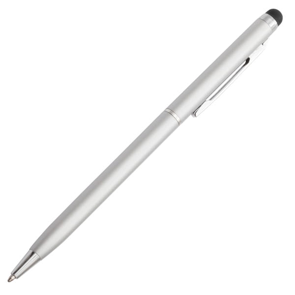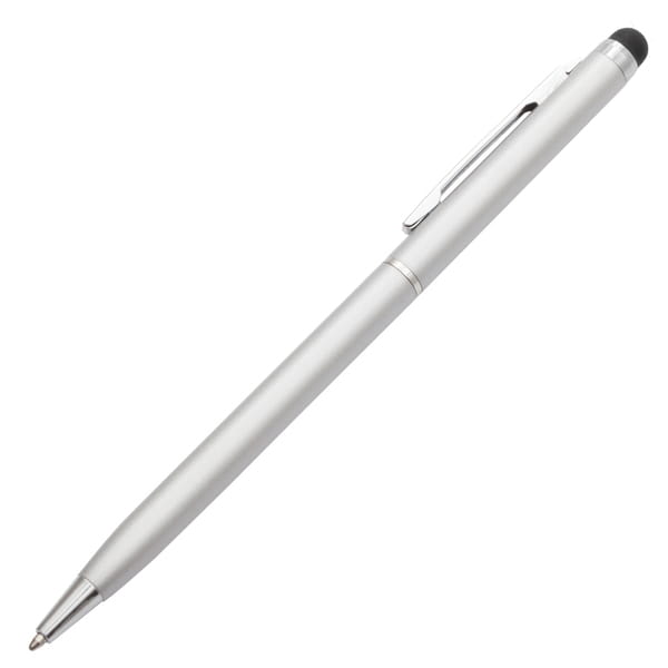 Wykonany z aluminium długopis z końcówką przystosowaną do ekranów dotykowych. Wyposażony w niebieski wkład.