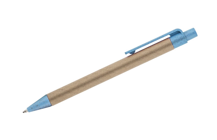 Długopis TIKO wykonany został z myślą o ponownym wykorzystaniu surowców. Jego korpus wykonany jest z papieru po recyklingu, a końcówki z tworzywa z domieszką słomy, która ogranicza ilość tworzywa sztucznego potrzebnego do produkcji. Prosty, ponadczasowy wzór. Długopis automatyczny. Wkład typu X20 w kolorze niebieskim.