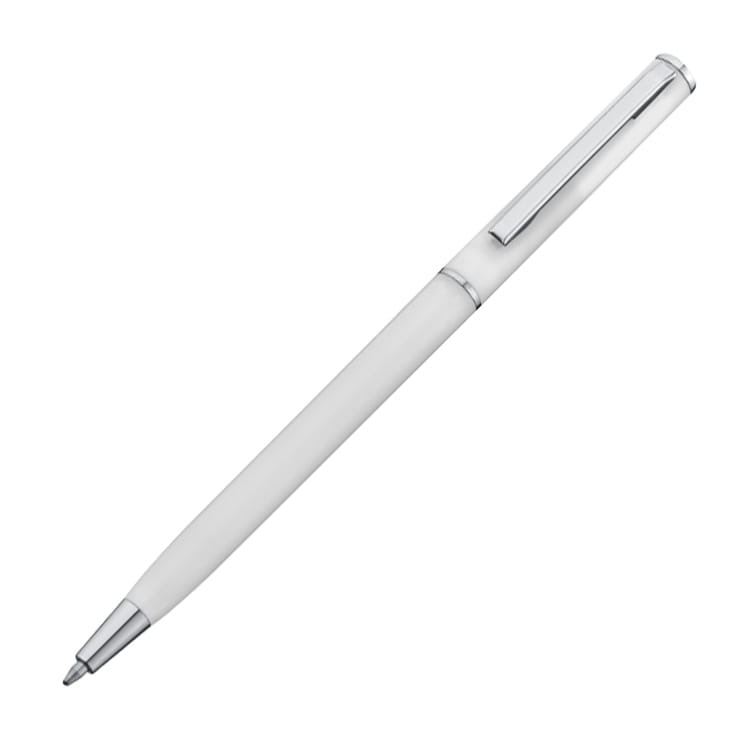 Smukły długopis plastikowy z mechanizmem obrotowym i wkładem piszącym na niebiesko. Nadruk proponujemy umieścić na korpusie.