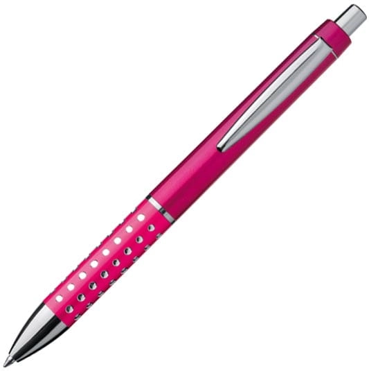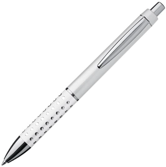 Plastikowy długopis o designerskim wyglądzie. Duży, niebieski wkład oraz metalowy klip czynią go bardzo praktycznym. Logotyp proponujemy umieścić na korpusie.