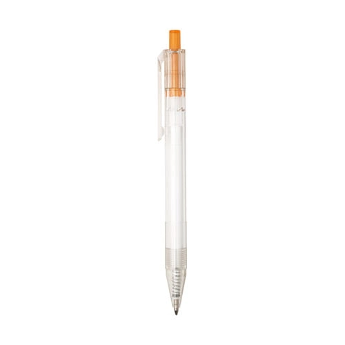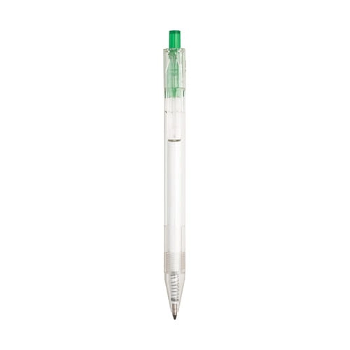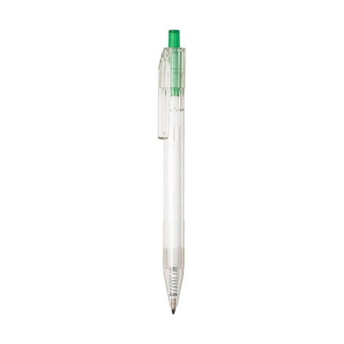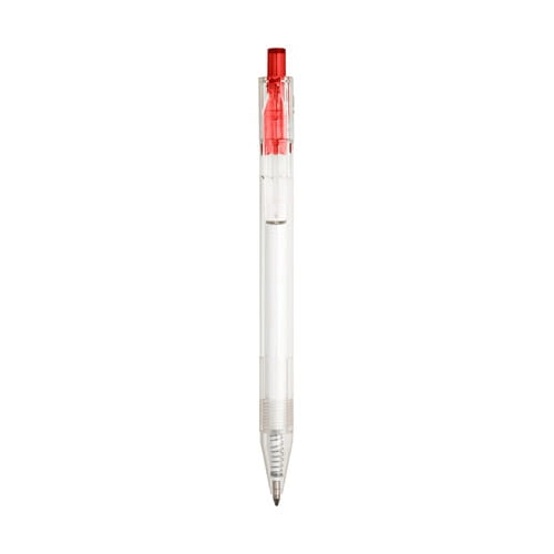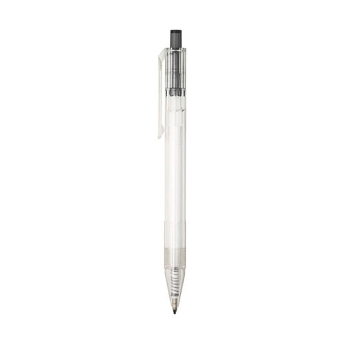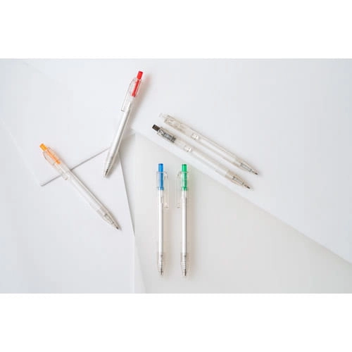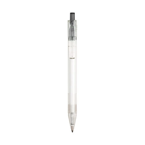 Długopis z przezroczystego materiału z recyklingu PET z kolorowym przyciskiem. Czarny wkład