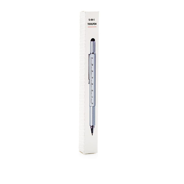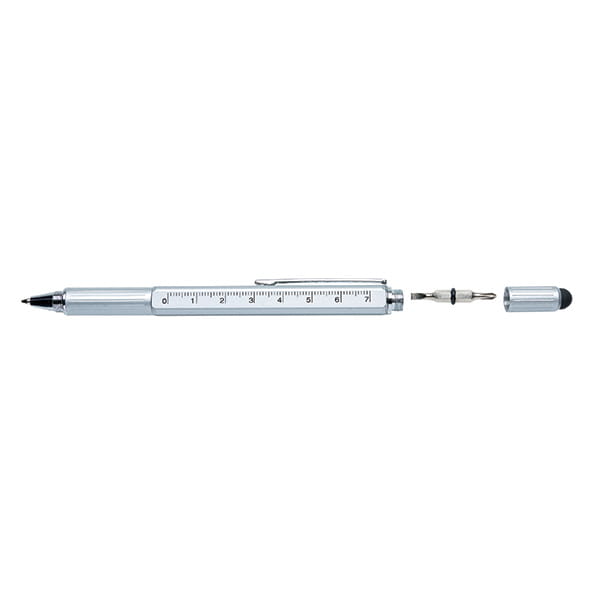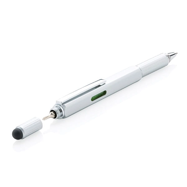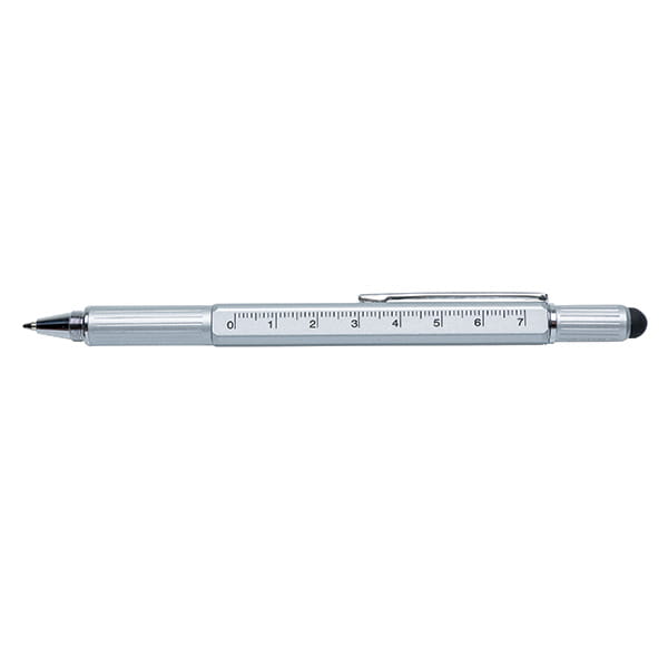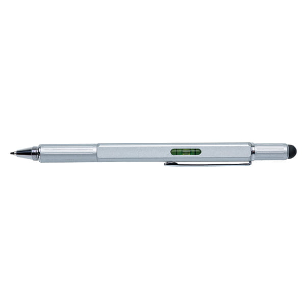 Długopis wielofunkcyjny 5 w 1, linijka 7 cm, poziomica, śrubokręt, touch pen, wykonany z wysokiej jakości mosiądzu, aluminiowy klip, długość pisania do 400 m