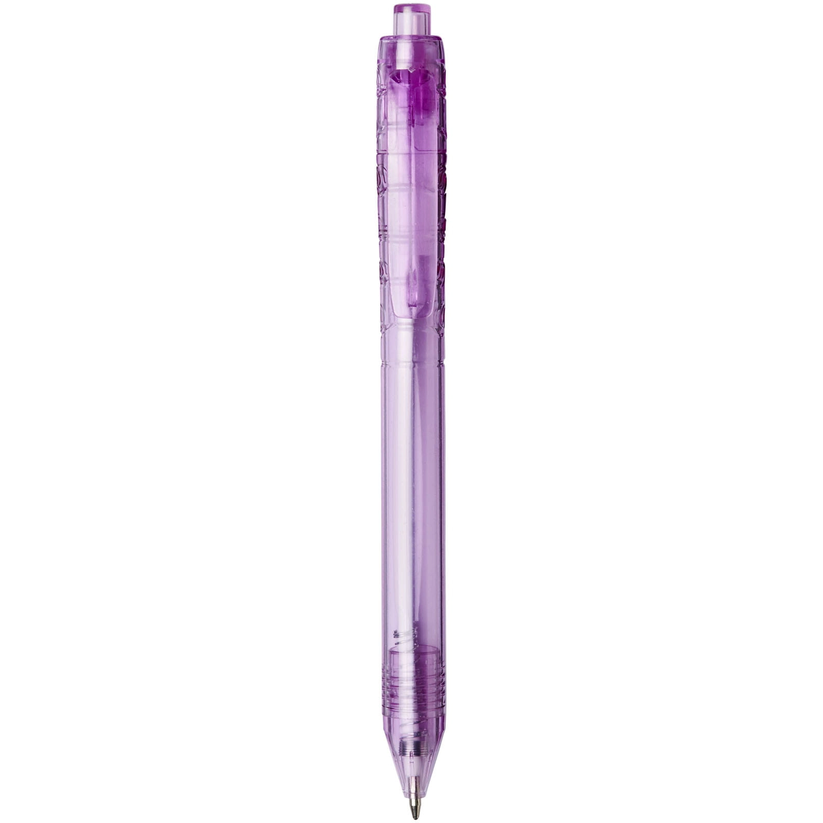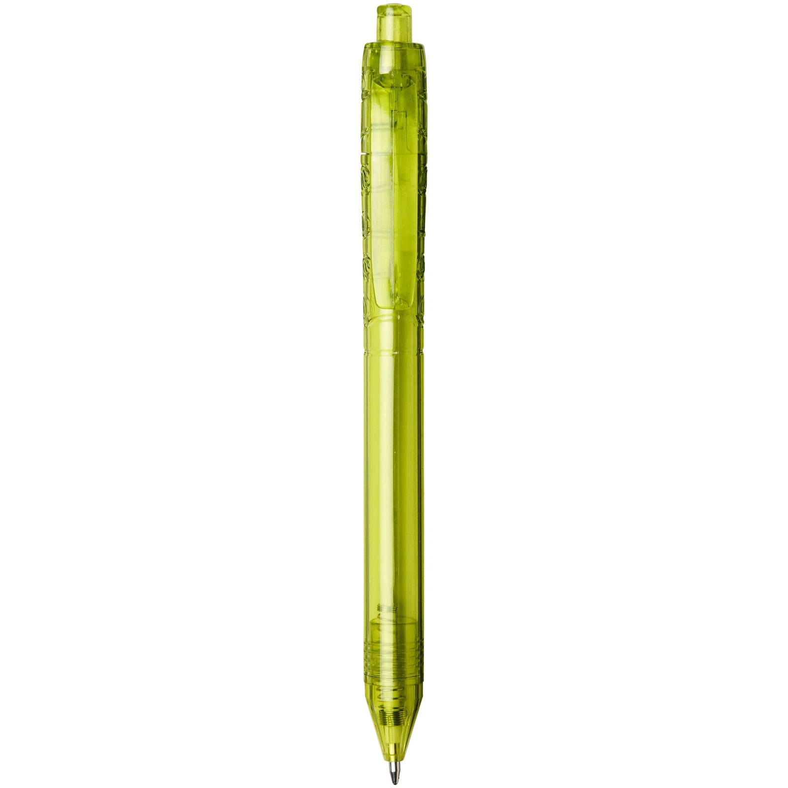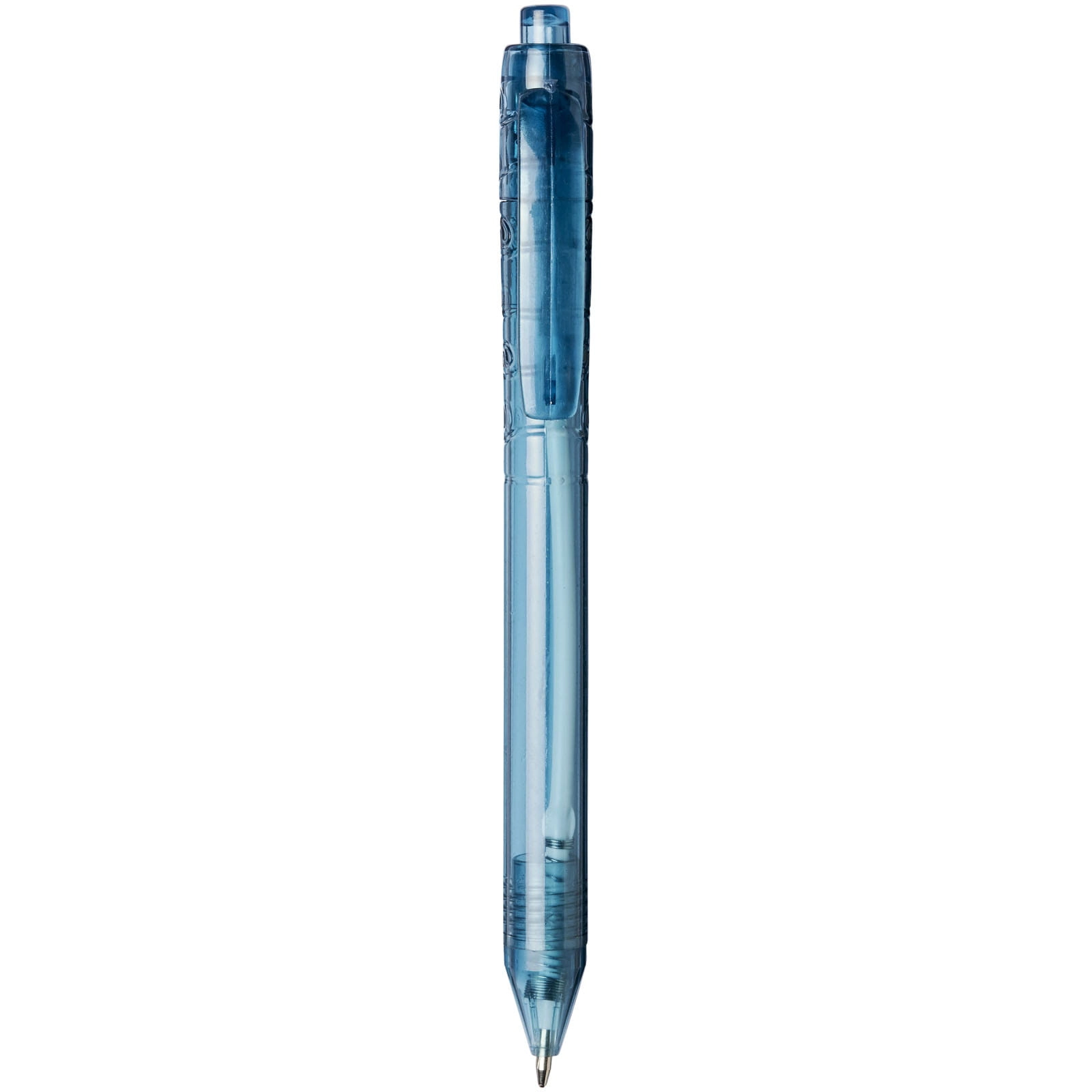 Długopis z recyklingu Vancouver. Przyjazne dla środowiska automatyczne długopisy z przezroczystym korpusem. Korpus wykonany jest z butelek na wodę poddanych recyklingowi, co przyczynia się do zmniejszenia ilości odpadów z tworzyw sztucznych. Plastik PET z recyklingu.