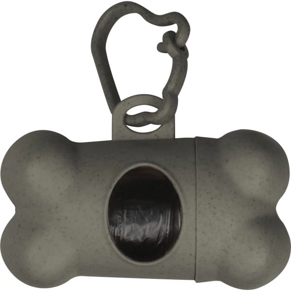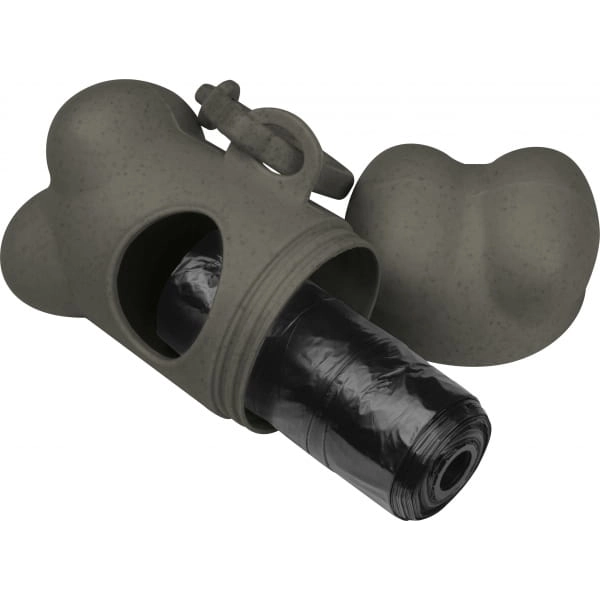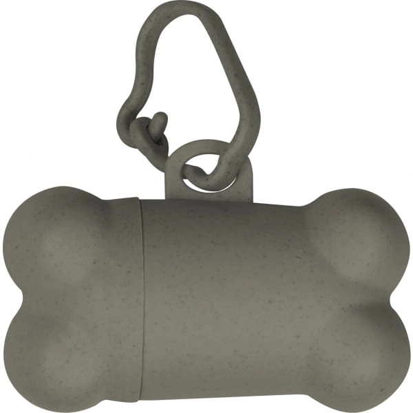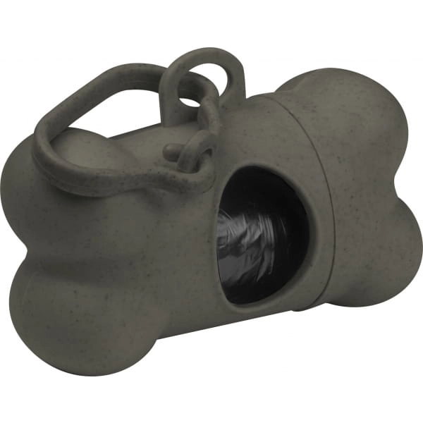 Nakręcany dozownik torebek na psie odchody w kształcie kości z plastikowym karabińczykiem i 15 biodegradowalnymi torebkami.