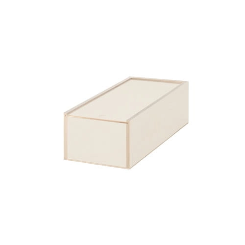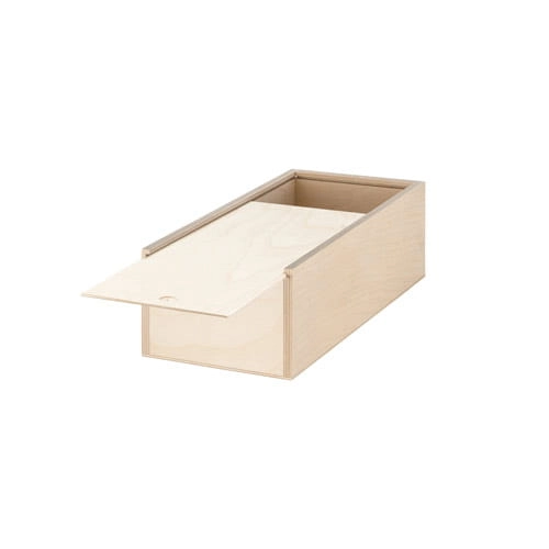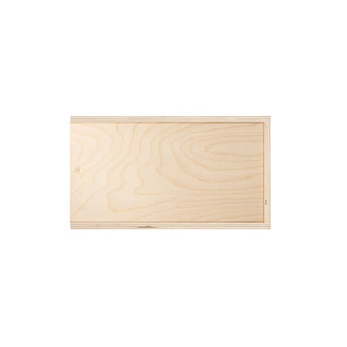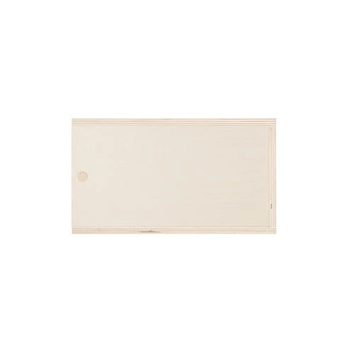 Pudełko ze sklejki z przesuwanym wieczkiem, również wykonanym ze sklejki brzozowej. Rozmiar M