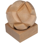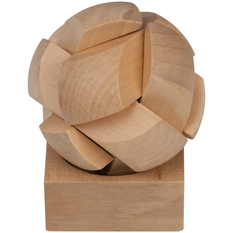 Puzzle przestrzenne wykonane z drewna. Składają się z 6 elementów, które należy połączyć tak, aby stworzyły kulę. Rozwija motorykę i logiczne myślenie.