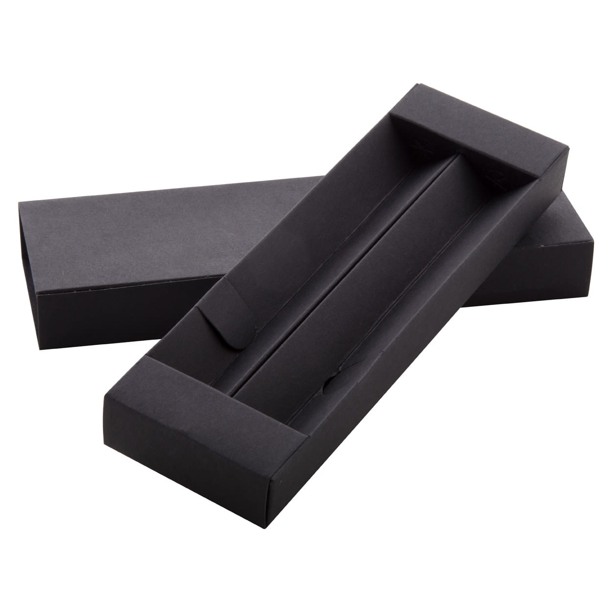 Czarne, kartonowe pudełko na 2 długopisy.