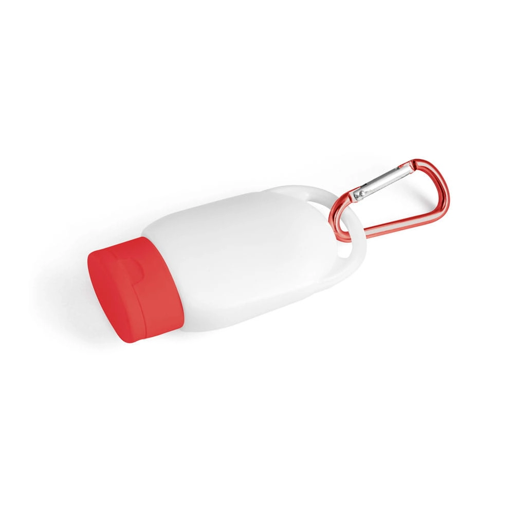 Filtr przeciwsłoneczny SPF30, pojemność 30 ml. Pojemnik posiada metalowy karabińczyk.