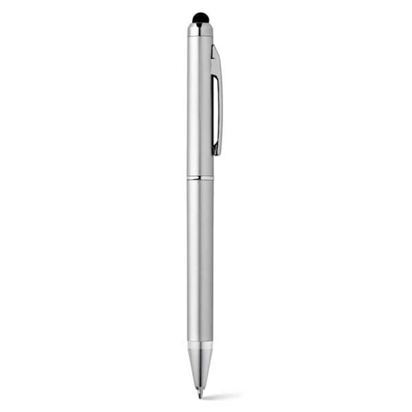 Długopis. Metaliczne wykończenie. Z metalowym klipsem i końcówką dotykową.